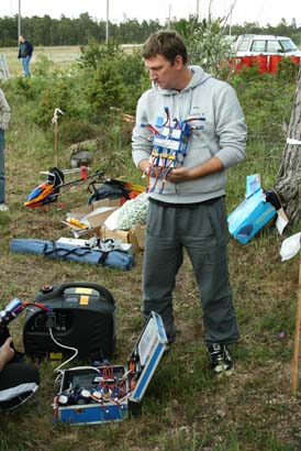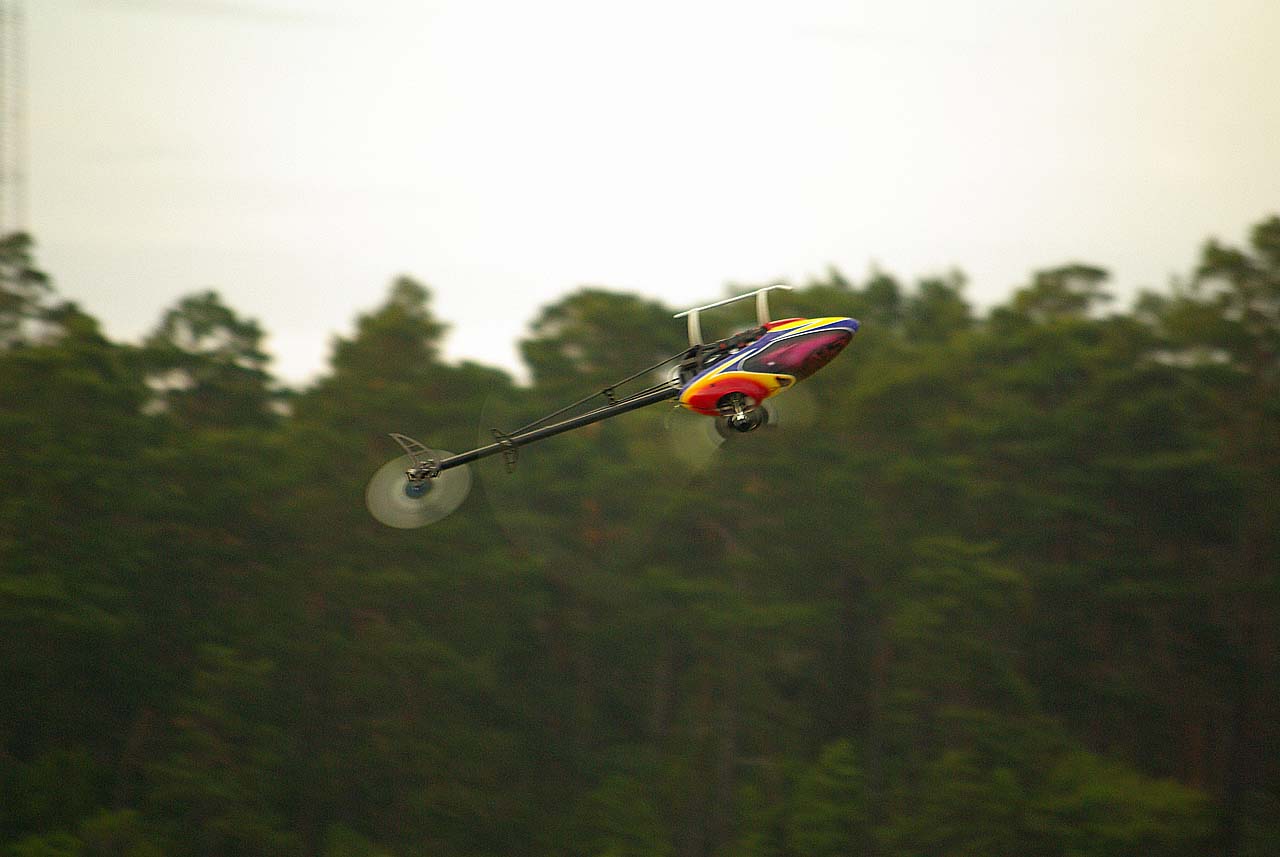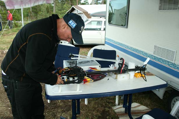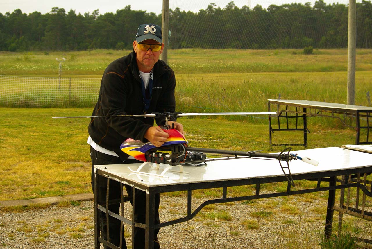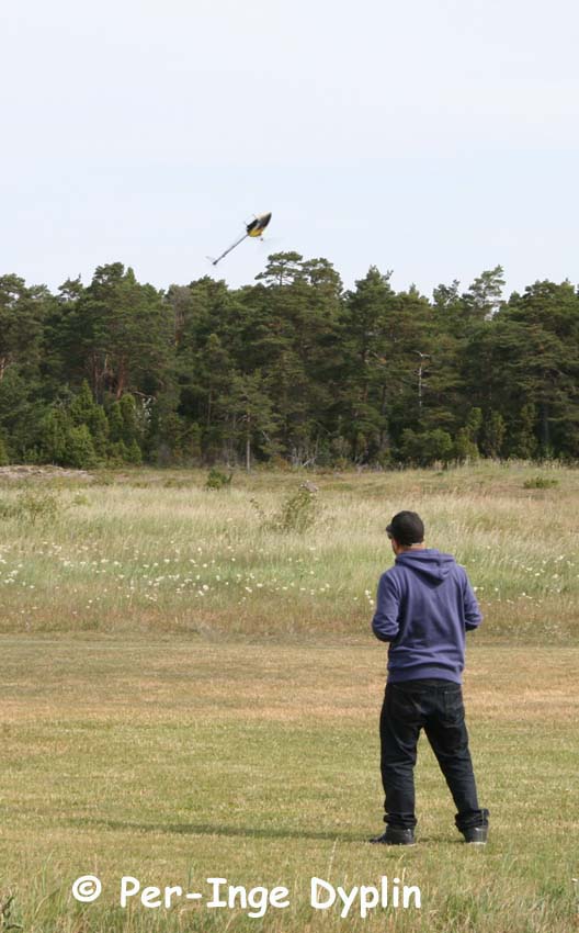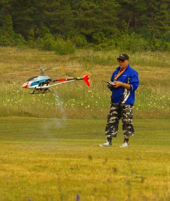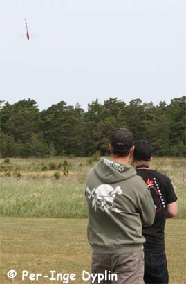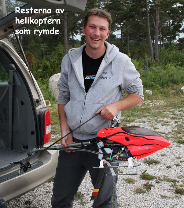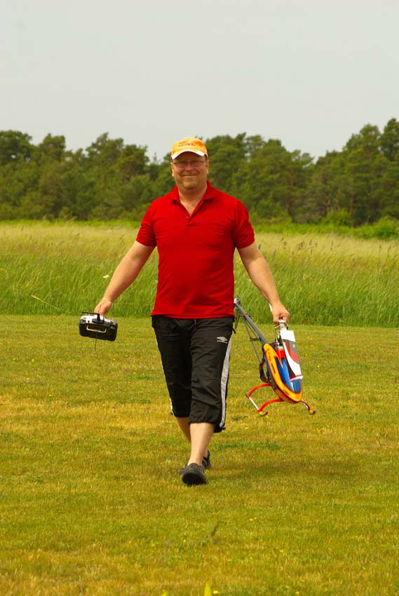 Så spaka R/C är definitivt en idrott om än något mindre fysiskt ansträngande. Såvida man inte måste klättra upp i ett träd eller liknande för att återbörda sin dyrgrip. Sånt kan ju kräva lite muskelstyrka förstås. Men på Gotland är träden inte så höga och modellhelikoptrar brukar inte komma så långt. Fast visst händer det. Som i år då en av East Coast's helisar rymde och försvann över skogbrynet på andra sidan fältet. Spaningspatrullen kom tomhänta tillbaks efter långt sökande, men märkligt nog kom den till rätta då en intillboende något senare återfunnit den.