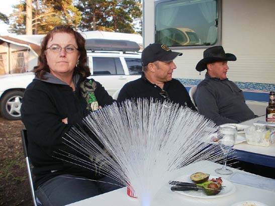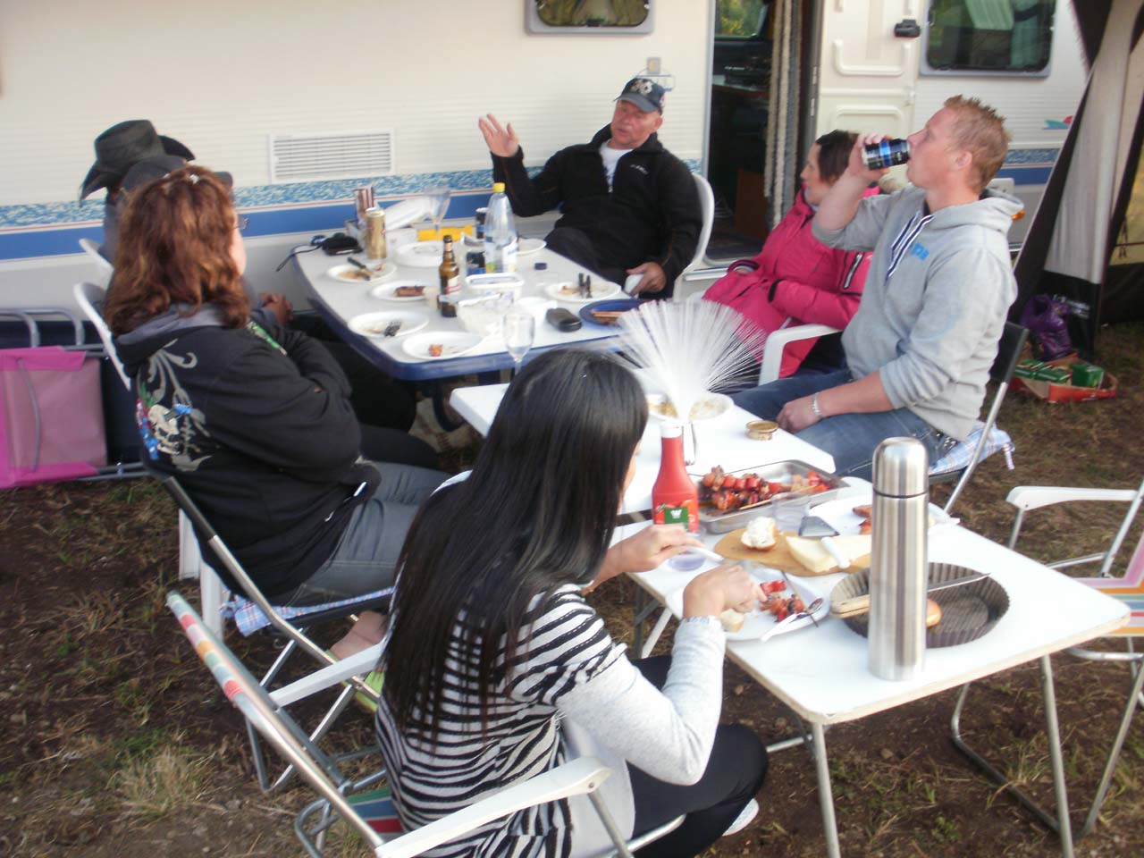 Träffen pågår över en helg och som traditionen kräver är det gemensam middag på lördagskvällen. Och bekvämlighetsinrättning finns på plats ifall någon skulle få för mycket av det goda. Tog dock inga bilder från det. Kameran skulle blivit så kladdig av hamburgerfyllningen, men Magnus underhöll i klubbstugan med sin gitarr till långt in på natten. Men så är han ju proffs också. Lyssna på Stollarna här.