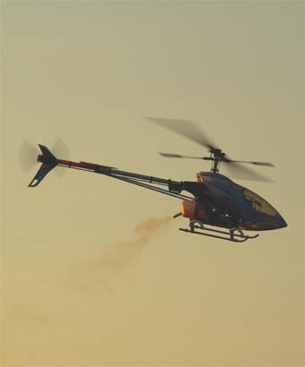 Men än är inte de metanoldrivna modellmotorerna utplånade och jag själv tänker nog försvara metanol och oljerykandet än ett tag. Men under denna träff kom det raskt på skam då Peter Wiks gamla Hirobo Sceadu som alltid fungerat klockrent inte ville starta. Märkligt. Men det var ju inte så mycket att göra annat än att plocka isär motorn. Snabbt inser man att det blir inget flygande med den. Hål i kolven. Konstigt nog när den var i luften sist gick motorn när jag landade den. Rejält varm och lite orkeslös visserligen, men den gick. Metanolheli nummer två hade lite egenheter för sig. Den fick man hantera med yttersta försiktighet, så det blev inte mycket fluget med den heller.