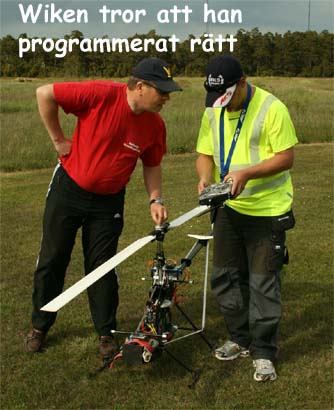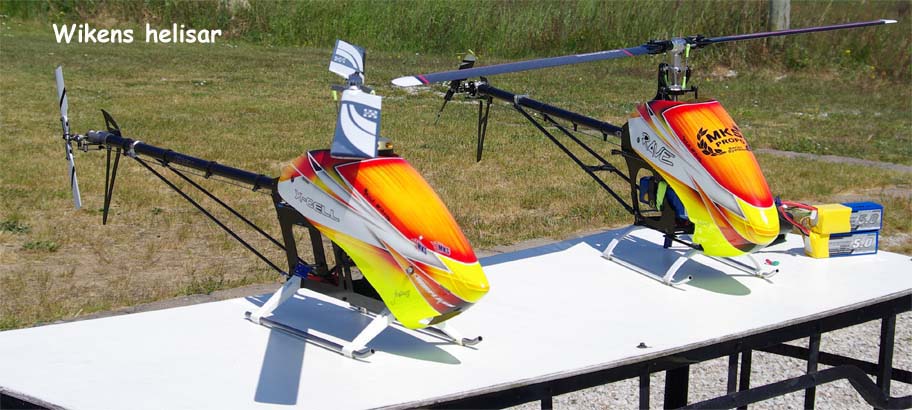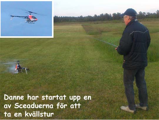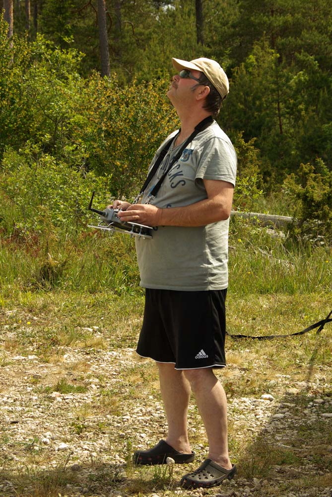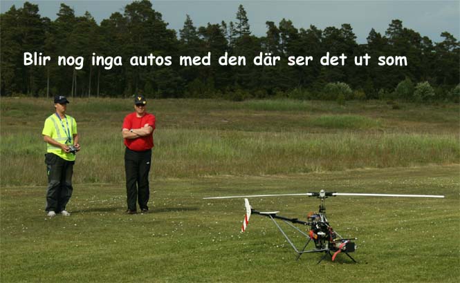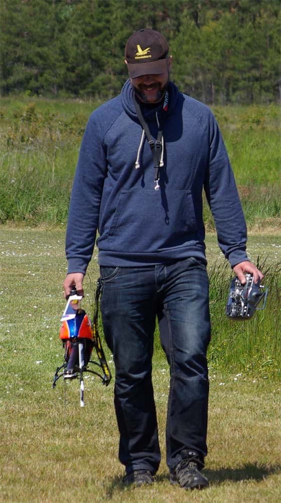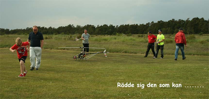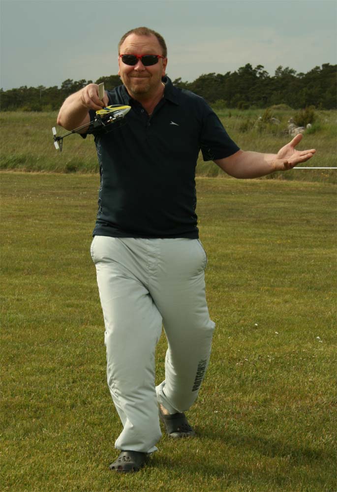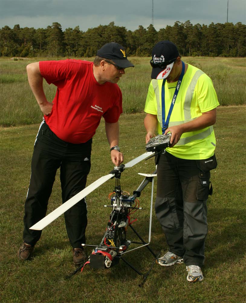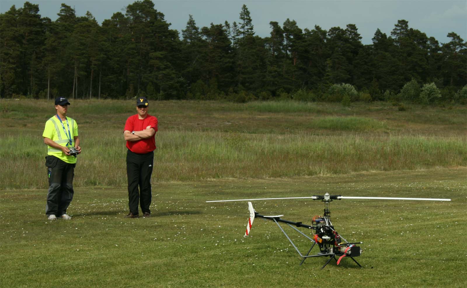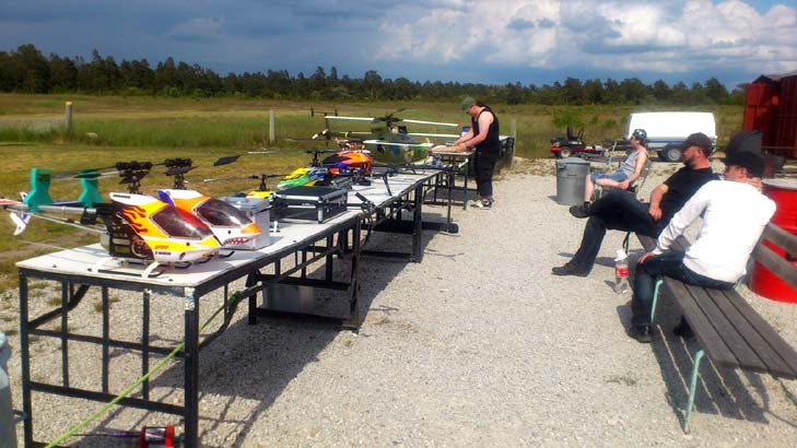 I år kom mångra tråkiga avhopp. Bland annat Gotlänningarna Mr. Mel (Fredrik Melin) skulle införskaffa en fyrfoting. Ove Larsson, numera Västerås, hade en dotter som tog studenten varför Petri Koski blev husvill och fick avstå han med. Raptor-Micke hade funderingar på att komma, men han skrotade sin Radikal G30 under Nationaldagsflygandet efter att en skruv släppt i stjärtdrevet, så han ställde in. Själv hade jag bytt motor i Wikens Hirobo Sceadu som så försmädligen blev kvar på marken under förra årets träff eftersom det var hål i kolven. Nu hade jag dessutom kompletterat med Jocke Anderssons Scedau som det är mycket bättre tryck i trots att det sitter identiska motorer i dem. Märkligt. Men de trivdes bra skavfötters i takboxen trots att det kan bli bra varmt däruppe när solen steker.