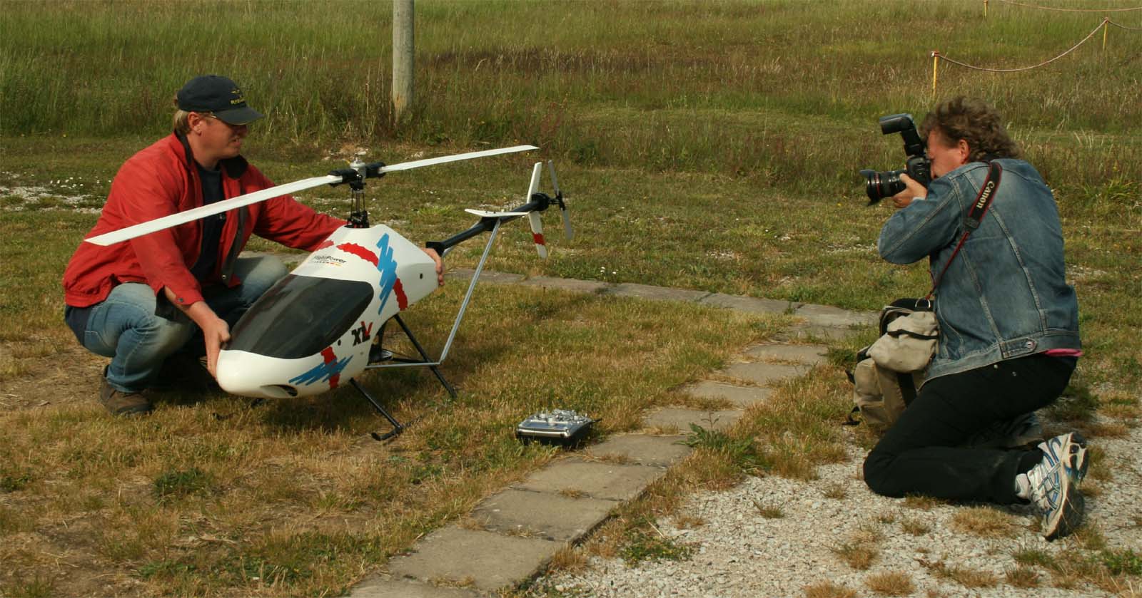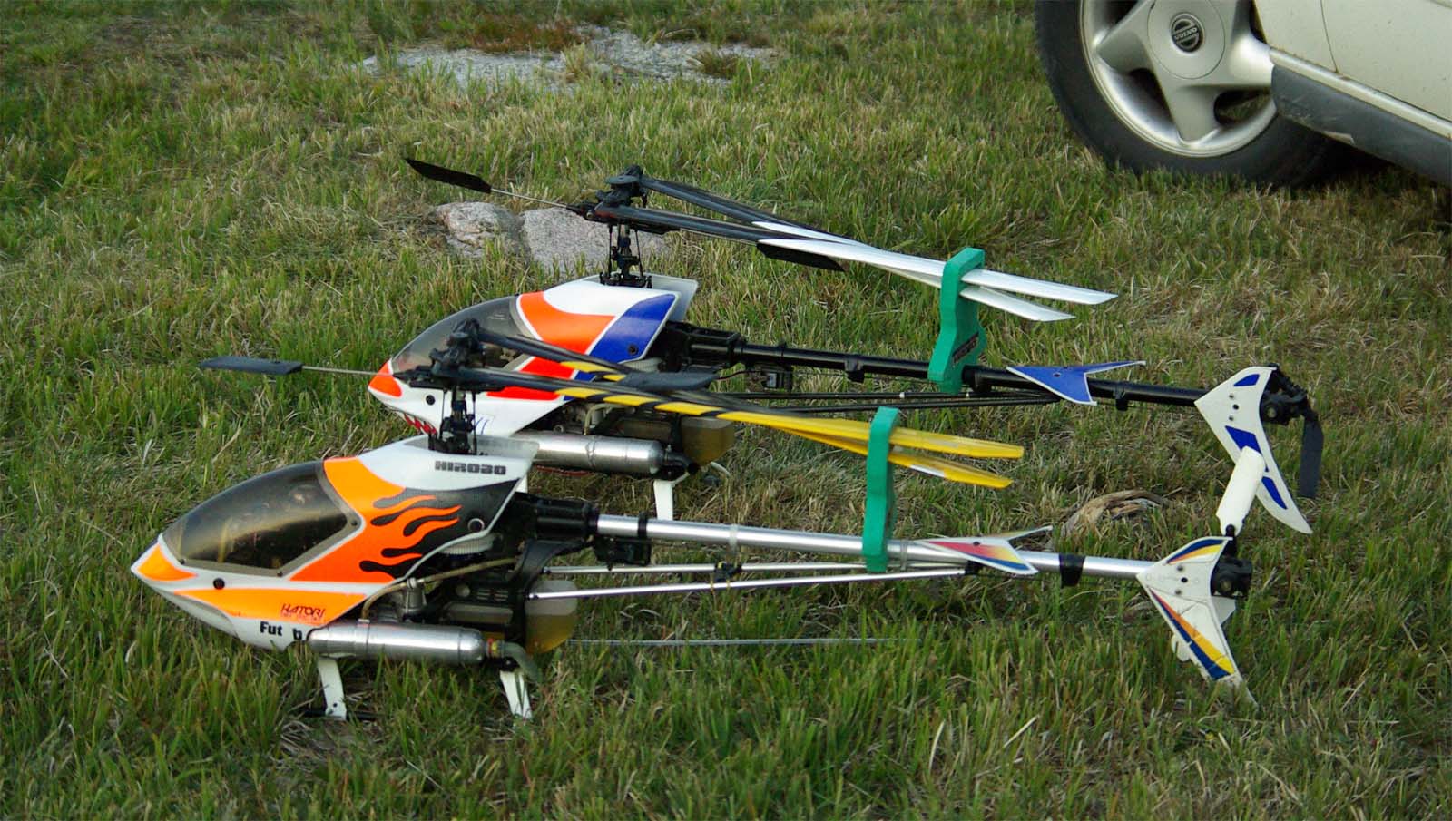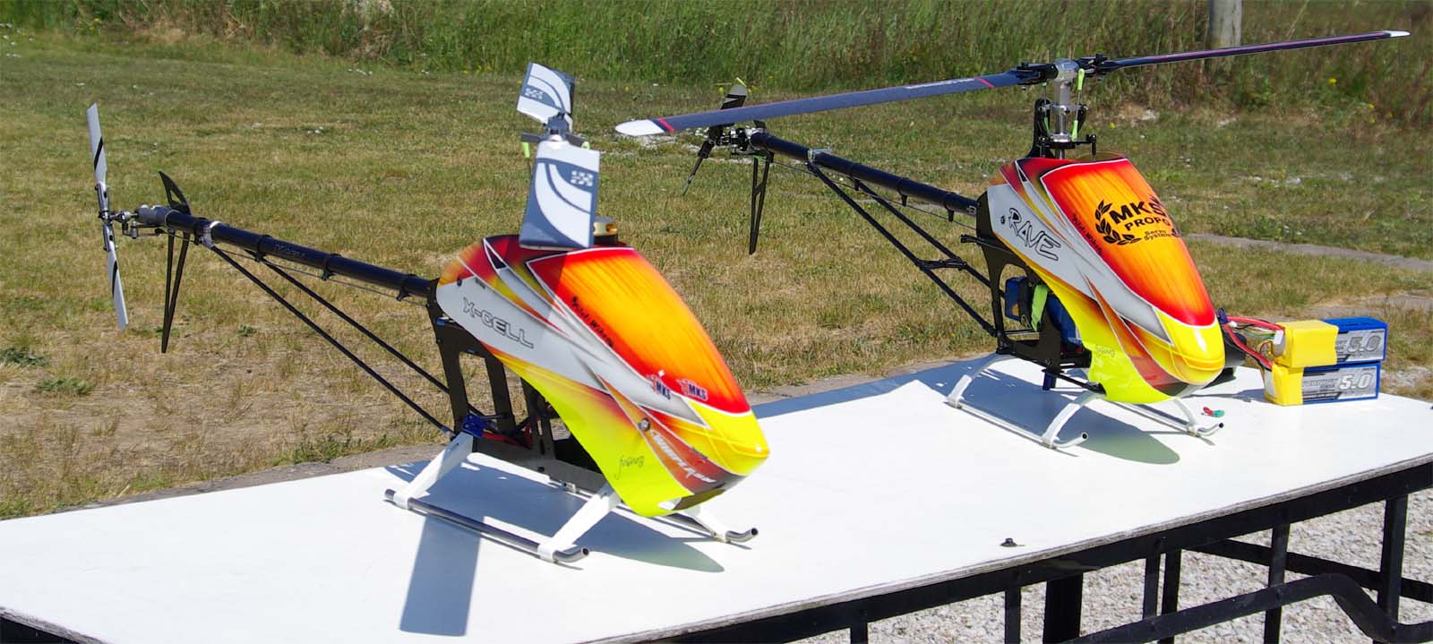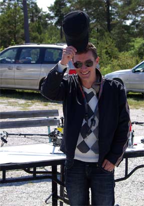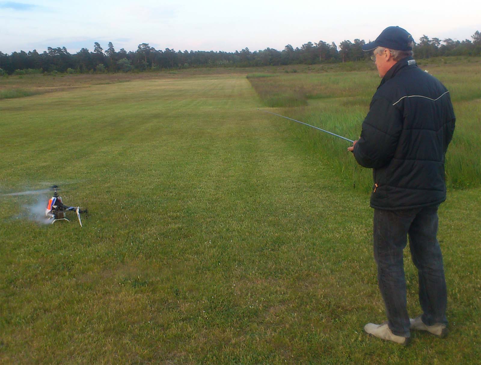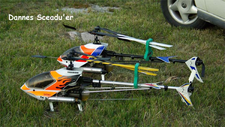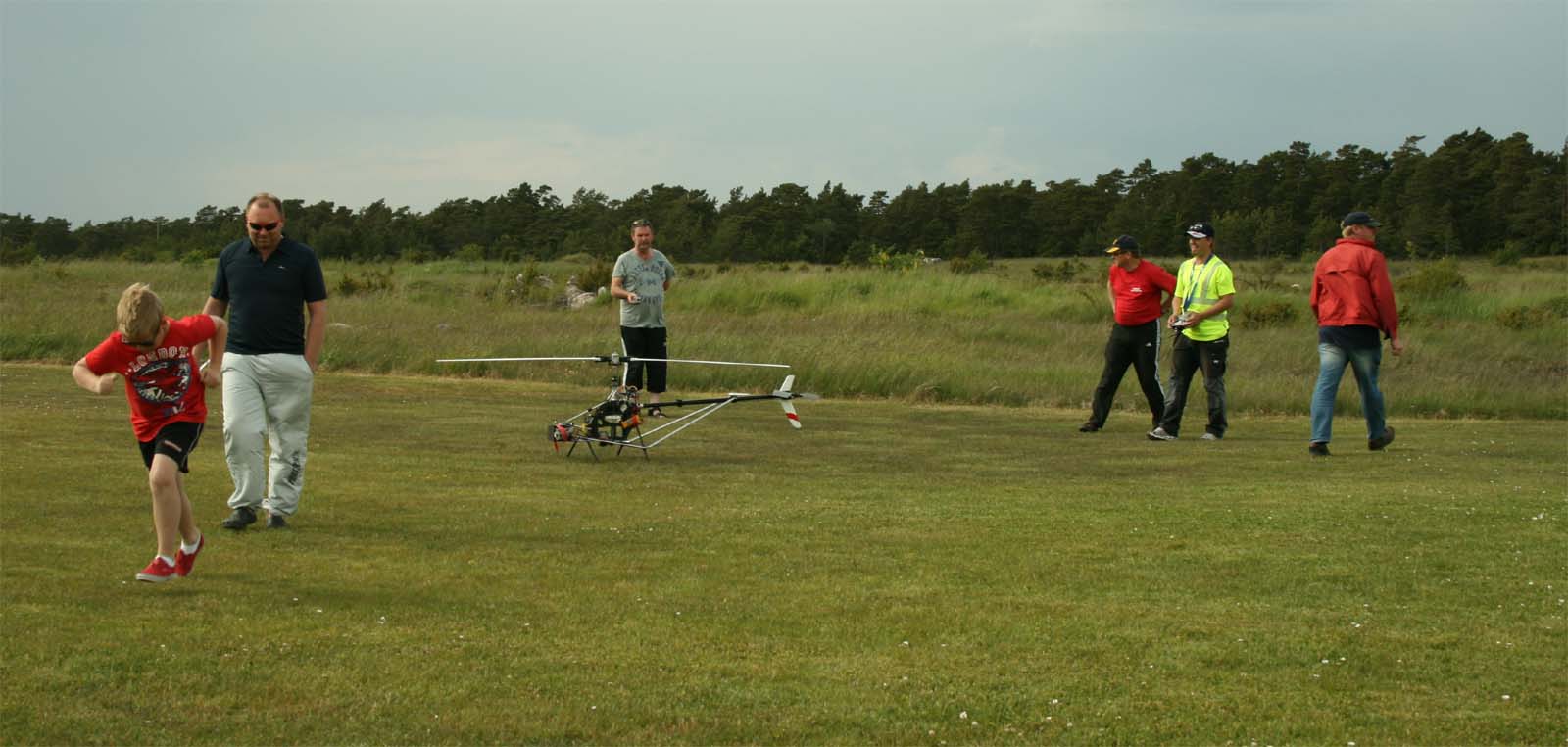 I år kom mångra tråkiga avhopp. Bland annat Gotlänningarna Mr. Mel (Fredrik Melin) skulle införskaffa en fyrfoting. Ove Larsson, numera Västerås, hade en dotter som tog studenten varför Petri Koski blev husvill och fick avstå han med. Raptor-Micke hade funderingar på att komma, men han skrotade sin Radikal G30 under Nationaldagsflygandet efter att en skruv släppt i stjärtdrevet, så han ställde in. Själv hade jag bytt motor i Wikens Hirobo Sceadu som så försmädligen blev kvar på marken under förra årets träff eftersom det var hål i kolven. Nu hade jag dessutom kompletterat med Jocke Anderssons Scedau som det är mycket bättre tryck i trots att det sitter identiska motorer i dem. Märkligt. Men de trivdes bra skavfötters i takboxen trots att det kan bli bra varmt däruppe när solen steker.