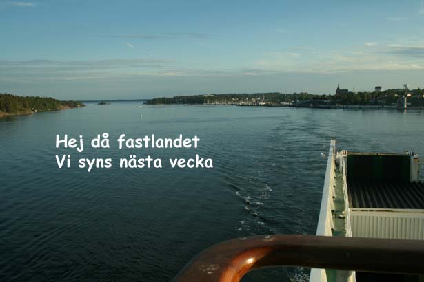Hur som helst hann vi med 20-färjan och det gjorde förstås att vi inte kom på plats förrän framåt midnatt. Lena och Uffe hade utlovat en kall öl, men ön hade istället bestått dem med en rejäl regnskur så av det blev ingenting. Dessutom var det mörkt som i en septembernatt så det var vara att dra åt