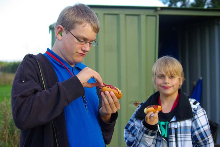 Förstås stoppades det in korv och dricka i hungriga magar innan dagen var slut och vi i RC-Sektionen kan summera en mycket lyckad om än något blåsig dag där de flesta kunde ta oskadade modeller med sig hem. Nu tar höstmörkret och något längre fram snön snart över och mespropparna får lov att flytta in verksamheten i gympahallar. Flera av oss har planer att bygga i depron (en sorts tunn och mycket lätt frigolit) som vi ska låta ta till väders inomhus. Även helikopterfantasterna har små helikoptrar som ska få piska upp dammet inomhus. Det går även alldeles utmärkt att flyga på vintern. Byt hjulen mot medar och stoppa in sändare och händer i en påse gjord av något fleecematerial. Om man inte är så petig med utseendet kan man sy till en av en överbliven barnoverall. Muffar och blixtlås finns ju redan på plats. Huvudsaken att fingrarna inte stelnar.