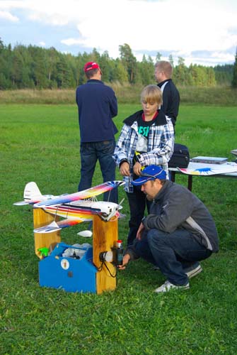 Först på plan var IBM's Danne Johansson med sin flygkompis Micke som kommer från klubben BusyBee. Strax efter kommer IBM's Fredrik Lüdtke med sina syskonbarn Fredrik och Otto som i bagaget har en Cessnamodell i frigolit som levt ett hårt liv och bär spår av många lagningar, som dessvärre skulle bli fler innan dagen var till ända. De hade även med sig en metanolbil som det gasades friskt med över startbanorna. Faktiskt så friskt att den ett tag försvann långt ut på den angränsande åkern.