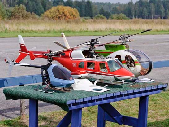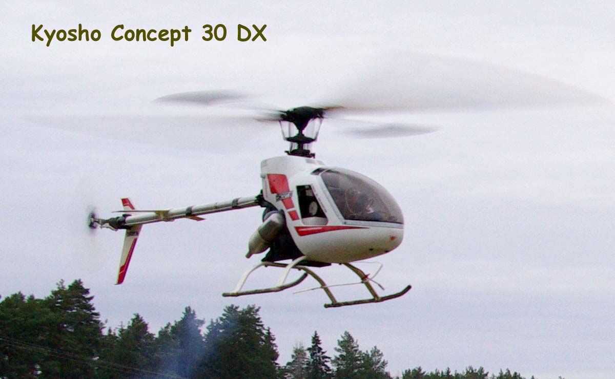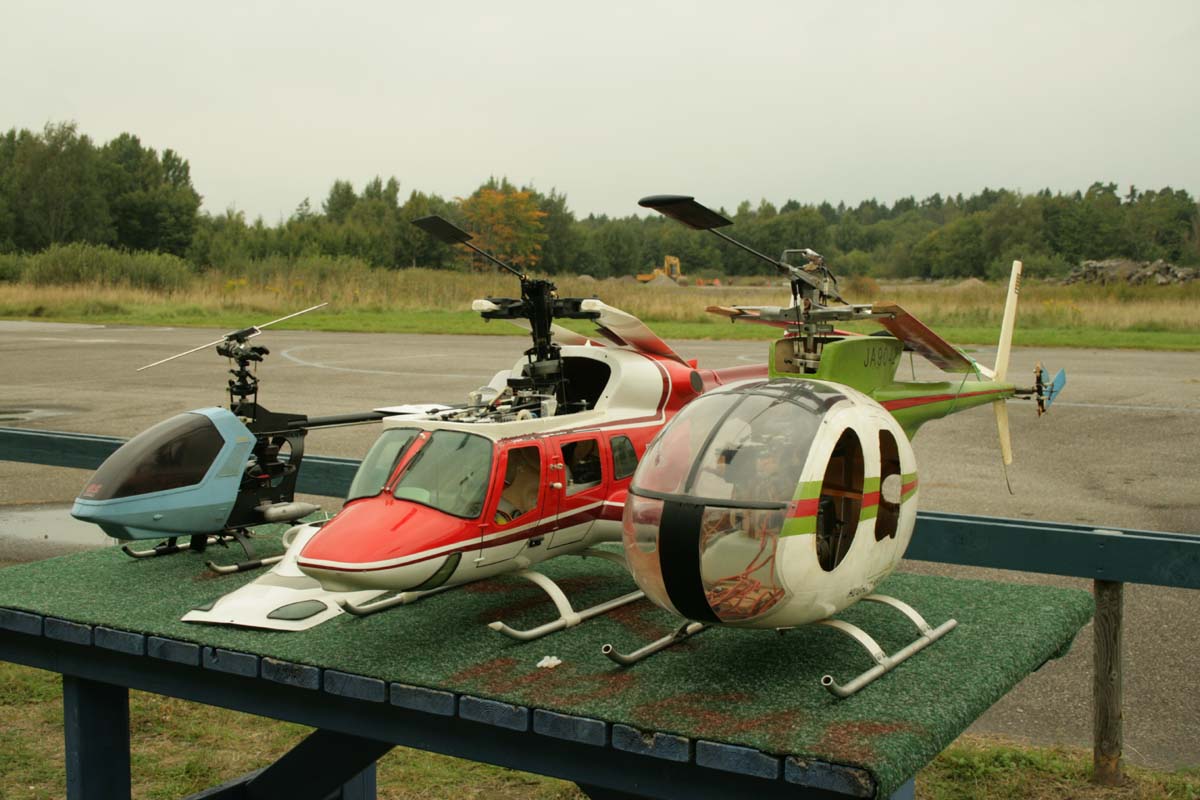 Undertecknad hade förutom Schlüters konstruktioner även med sig två japanska modeller av märket Kyosho. En EP, vilken väl får anses som den första fungerande el-helikoptern och en Concept 30 med sina flappande rotorblad som så många lärde sig flyga med på den tiden det begav sig. även den försedd med