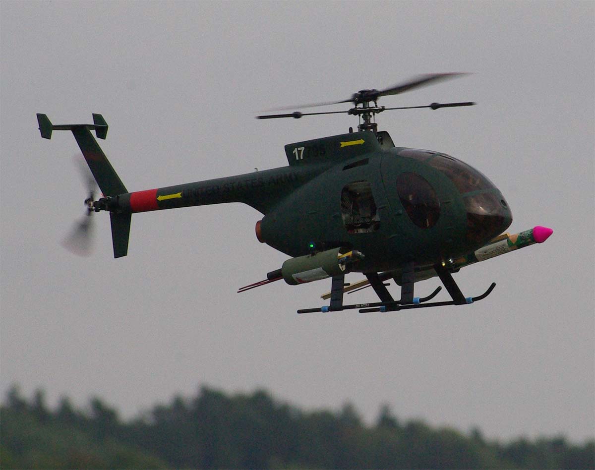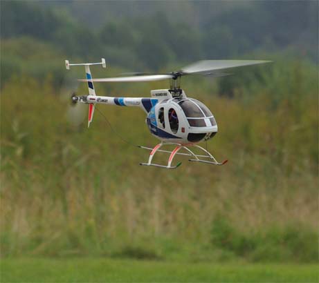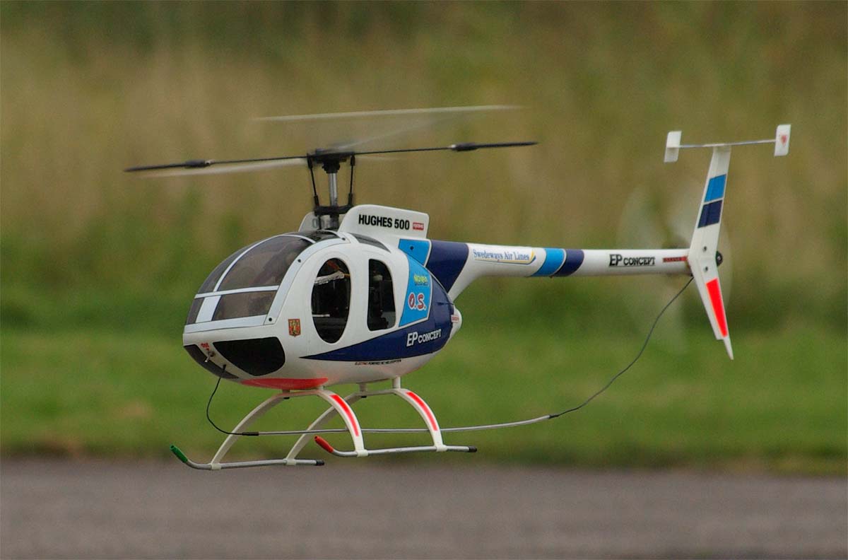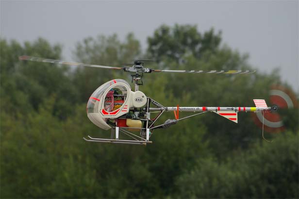 En Kyosho EP med en Hughes 500-kropp flögs av Ove Andersson från hemmaklubben. Lite bekymmersamt med bladspårningen hade den. De gamla skumplastbladen levde sitt eget liv. Men man ska inte hänga upp sig på småsaker. Det var faktiskt så där det var under modellhelikoptrarnas tidiga år. Man får helt enkelt gilla läget