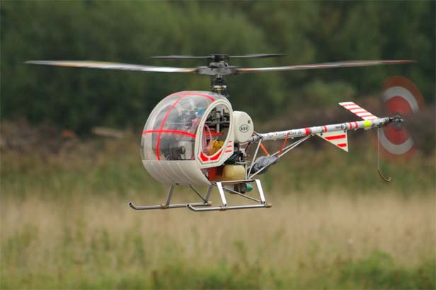 Gamla modellhelikoptrar ska helst flygas i svaga vindar eftersom de för det mesta är rätt utslitna i det mekaniska. Plus att de redan i sin glans dagar kunde vara lite stingsliga att hantera. Dessutom har ju piloterna åldrats i samma takt vilket inte gör saken bättre.