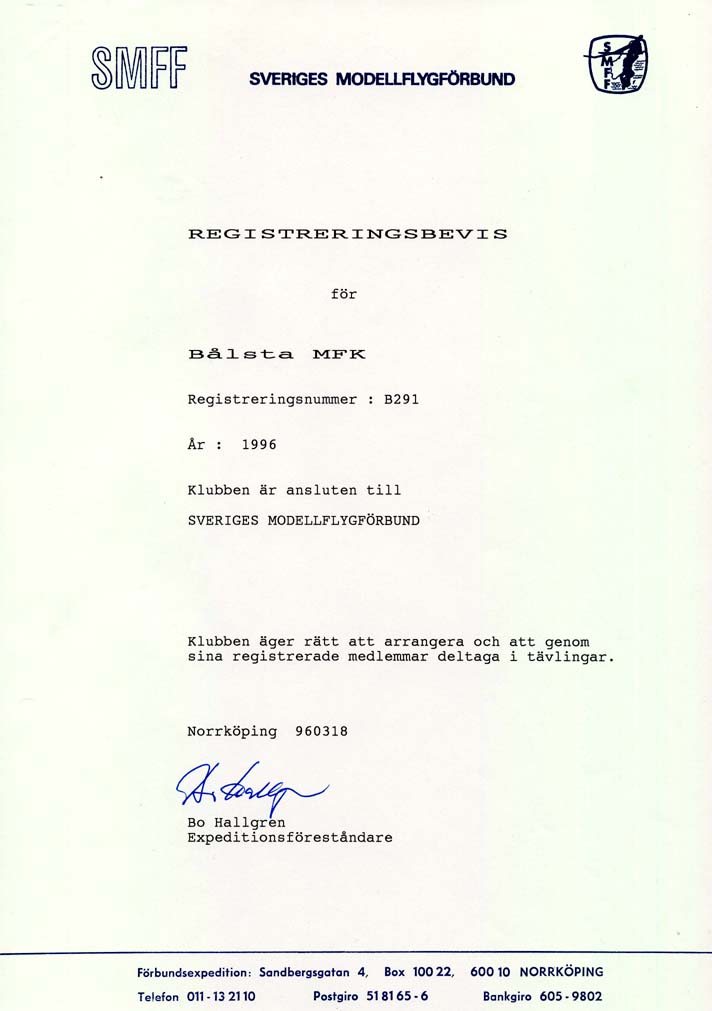 under Flygsportförbundet. Huruvida det gamla klubbnumret fortfarande är aktuellt vet vi ej. Dock existerar det fortfarande på webben