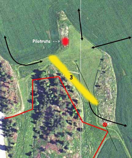 flyga in österifrån och sen vika tvärt ner för att inte hamna över hästarna. Om en tredja bana skapas måste depån flyttas. Lämpligen upp på berget bakom. Eller längs staketet mellan parkeringen och nuvarande depåplats. Likaså måste containern ställas någon annan stans. Inget beslut togs.