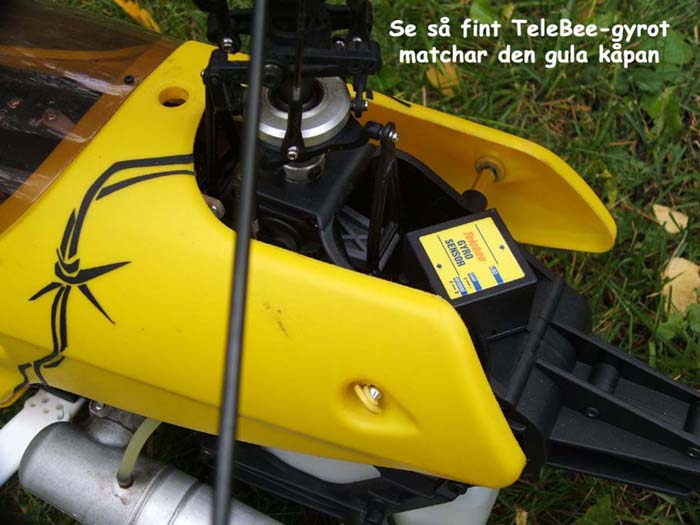 Efter några tankar kan man konstatera att TeleBee-gyrot nog bäst passar på en utställningsmodell. Futabas eller JRs gamla mekaniska gyron funkar faktiskt bättre.